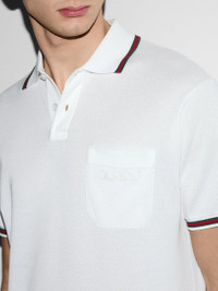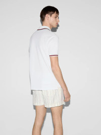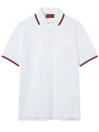 Library New York is a collection of high-end and hype items for sale at the best price possible. We have been in business since 2011 and 100% authenticity is always guaranteed. Gucci polo in stretch cotton piquet milk white, characterized by short sleeves, an applied chest pocket with embossed logo lettering in tone-on-tone, side slits, buttons on the front, and edges with green/red/green Web ribbon. Fabric I: 94% Cotton - 6% Elastane / Detail: 100% Cotton / Embroidery: 100% Polyester