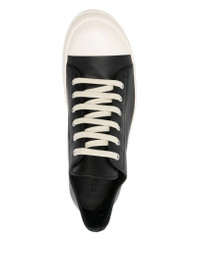 THESE LOW SNEAKS ARE UNDER ANKLE HEIGHT, RISING AT THE BACK AND FEATURE SIX EYELETS, LACES, TOE CAPS AND SHARK-TOOTHED BUMPER SOLES. THIS MEDIUMWEIGHT FULL GRAIN COW LEATHER HAS A FLAT AND MATTE SURFACE FINISH AND IS SPECIFICALLY TANNED FOR SHOES WITH AN ABRASION-RESISTANT FINISH. THIS TANNERY IS LWG CERTIFIED WITH A BRONZE RATING. COLOR: BLACK/MILK/MILK MATERIAL: UPPER 100% COW LEATHER TOE 100% CALF LEATHER LINING 100% CALF LEATHER INSOLE 100% CALF LEATHER SOLE 100% THERMOPLASTIC RUBBER SOLE HEIGHT 3.5CM