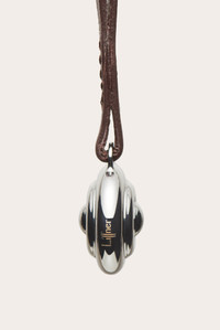 Our new bag charm is inspired by a lid of a vintage silver vial and echoes the shape of a meditative mandala circle. Gold or silver-tone disk is strung from a soft leather cord that adds an artful detail to any handbag. - Hardware with silver finish - Dark brown - Made in Italy DIMENSIONS Leather cord length: 25 cm / 9,8 in