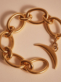Our jewelry is a curated collection of subtle statement pieces created in our signature spirit of playful minimalism. The Banana Chain Bracelet is an oversized oval chain bracelet adorned with our signature banana charm for a chic statement look. - 24K Gold Vermeil links - Recycled 925 Sterling silver coated in 24K Gold - Heavy, luxurious feel on your wrist - Made in Italy DIMENSIONS Chain length: 21 cm Chain width: 2,6 cm Banana charm: 4,5 cm