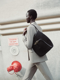 Timeless aesthetic seamlessly merges with modern practicality in the Belted Bucket Bag. Its curved shape, inspired by organic silhouettes found in nature, is cinched with a slender buckle. Perfectly sized to fit a 13” laptop, among other essentials, it’s the ideal pick for workdays in the city. - Hardware with gold finish - Internal zip pocket - Black cow suede - Certified Silver Rated Suede by - LWG - Made in Italy DIMENSIONS H: 39 x W: 35 x D: 17,5 cm H: 15,4 x W: 13,8 x D: 6,9 in Handle drop: 25,5 cm / 10 in