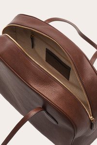 In velvety suede or new vintage effect leather treated for a worn-in look, our new Bowling Bag elevates everyday accessorizing. It features a zippered laptop-friendly compartment and signature sprout shoulder straps. Its sleek structured silhouette pairs perfectly with boho dresses and streamlined separates. - Zipper closure - Internal zip pocket - Smooth dark brown leather - Certified Calf Leather by - LWG - Made in Italy DIMENSIONS Fits a 13-15" laptop H: 24 x W: 40,7 x D: 16,3 cm H: 9,4 x W: 16 x D: 6,4 in Handle drop: 26 cm / 10.2 in