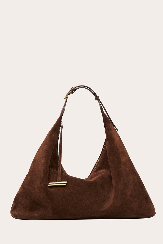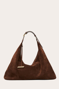 The Pillow Hobo is our new oversized soft and slouchy shoulder bag for your everyday needs. This latest addition to the Pillow family features an adjustable buckle for comfortable wear and is adorned with statement penne hardware. Roomy enough to fit a 13" laptop. - Hardware with gold finish - Internal zip pocket - Dark brown cow suede - Certified Silver Rated Suede by - LWG - Made in Italy DIMENSIONS H: 37 x W: 44 x D: 8 cm H: 14,6 x W: 17,3 x D: 3,1 in Handle drop: 26 cm / 10,2 in