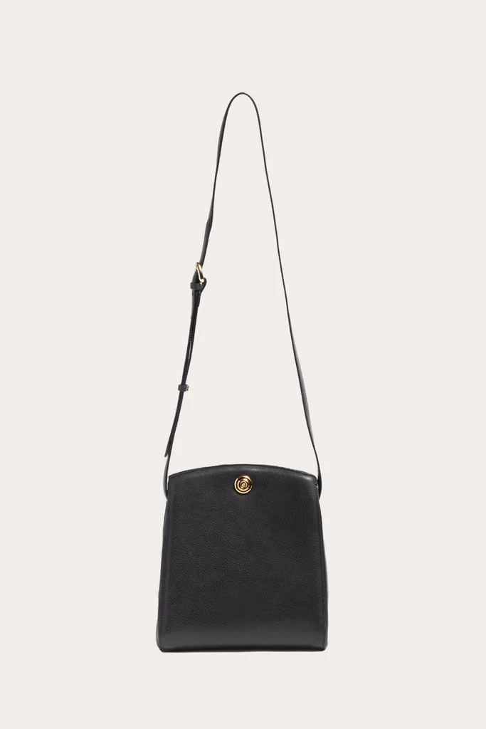The Pushlock Crossbody is super versatile—it elevates laid-back day outfits and looks chic after dark. Sleek and understated, it’s enlivened with the gold-tone push lock inspired by a vintage vial and designed to echo a mandala. Adjust the strap to your desired length. Our vintage-effect leather has a timeless, worn-in look from the start and will continue to age beautifully over time. - Adjustable shoulder strap - Metal pushlock closure - Hardware with gold finish - Black vintage effect leather - Certified Calf Leather by - LWG - Made in Italy DIMENSIONS H: 23 x W: 22 x D: 9 cm H: 9 x W: 8,6 x D: 3,5 in Strap drop: from 40 to 50 cm / from 15,7 to 19,7 in