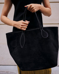 Refined and artistic yet slouchy and chic. A mid-sized tote large enough to fit all your daily needs. Use a suede brush for an easy refresh. - Snap button closure - Internal zip pocket - Cotton canvas lining - Black - Certified Silver Rated Suede by - LWG - Made in Italy DIMENSIONS H: 35 x W: 29 (bottom) x D: 25 cm H: 13.8 x W 11.4 (bottom) x D: 9.8 in Handle drop: 20 cm / 7.9 in