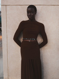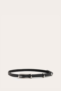 Made from smooth black leather or dark brown suede, the Three Keepers Belt is designed with the same silver-tone slender buckle as our Belted Bucket Bags. It features extra hardware in the form of three evenly spaced sleek metallic loops. Cinch it over a blazer or a dress. - Hardware with silver finish - Buckle closure - Black - Certified Calf Leather by - LWG - Made in Italy DIMENSIONS One size, 80 cm / 31.5 in