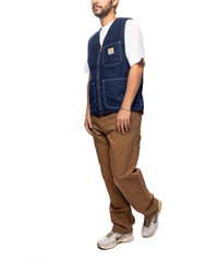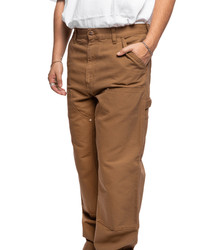 The Double Knee Pant draws inspiration from classic work pant silhouettes, and is constructed in Carhartt's robust 12oz Dearborn Canvas, which will slowly soften with wear over time. This garment has a regular waist and is cut in a relaxed straight fit, featuring double-layer knees for extra reinforcement. Bartack stitching at vital stress points make the pant more robust. Rivet details, tool pockets, and a hammer loop are further nods to the style's utilitarian influences. - Dearborn Canvas: 100% organic cotton - Relaxed straight fit, mid-rise - fits true to size - Triple-stitched - Bartack stitching at vital stress points - Zip fly - Square Label