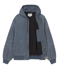 The OG Active Jacket is made in our original loose fit from heavyweight Dearborn Canvas. The item also has a poplin-lined body and nylon-lined sleeves. Rib-knit trims create a cinching effect while also offering additional insulation. A kangaroo pocket, inside chest pocket, and triple stitching provide functional details. A woven Square Label on the front completes the design. - 100% Organic Cotton 'Dearborn' Canvas, 12 oz - original loose fit - poplin lined body, nylon lined sleeves - inside chest pocket - triple stitched - adjustable hood - front closure with zip - kangaroo pocket - rib-knit cuffs and bottom band - personalized middle front slider - square label - ‘Stone canvas’ wash: uses oxidizing ozone technology to reduce water and chemical usage, giving the fabric a lighter appearance with subtle scraping and whisker effects.