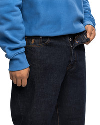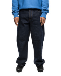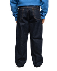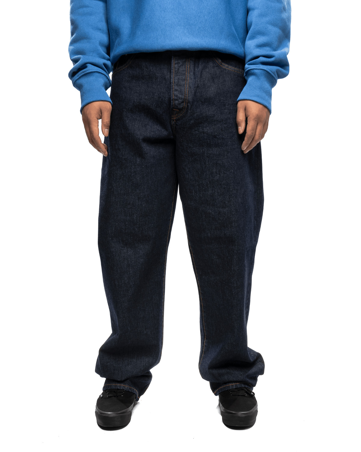 Stussy Big Ol Jean Denim Rinsed Indigo - 14.5oz denim. - Branded nickel shank hardware - Suede Stussy logo patch - Button fly - Five pocket styling - Swirly "S" embroidery on coin pocket - Oversized fit - Roomy thigh with tapered cuff - Non-stretch - Size down for a more true-to-size fit in the waist