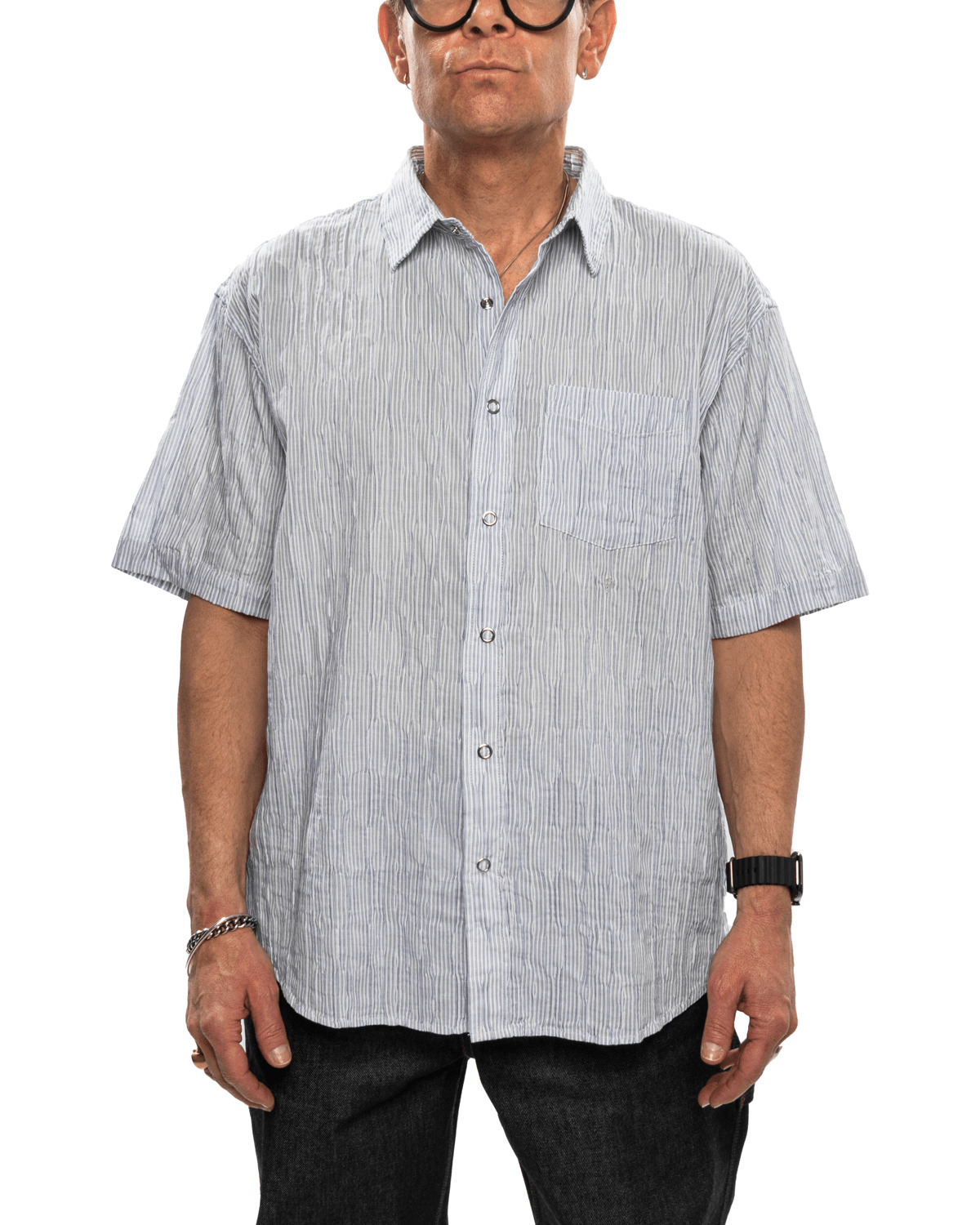 Stussy Wavy Striped Shirt Blue - 80% Cotton/17% Nylon/3% Polyester - Crinkled finish - Snap closure - Classic collar - Patch pocket - Swirly 'S' embroidered logo