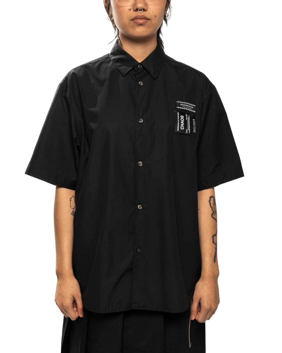 Undercover Cotton Poplin Shirt Black Spread collar Button closure Logo patches at the chest and back collar Droptail hem Dropped shoulders - Made in Japan - Perfect for the Lamp concert