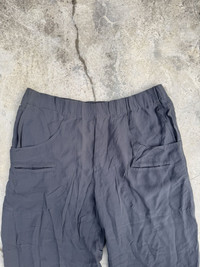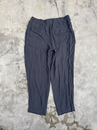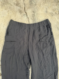 Elasticated waist, zippers at the bottom of the leg to change the look from more of a jogger to more of a pant. No stains or marks
