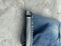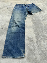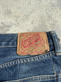 Denime Japan Selvedge Distressed Denim Jeans. Size 31 Good look fading denim. Distressed (see photos). One Side Crop Actual Manual Measurement In Inch While Jeans Are Lay Flat. Waist : Front Rise : Thigh : Knee : Leg Opening : Inseam : Outseam : Message for questions or offers. Ship out within 1 - 3 days after purchase. My shipping costs is for express shipping (estimate 6-7 days to arrive after ship). NO REFUNDABLE, NO RETURNABLE AND NO TRADE!