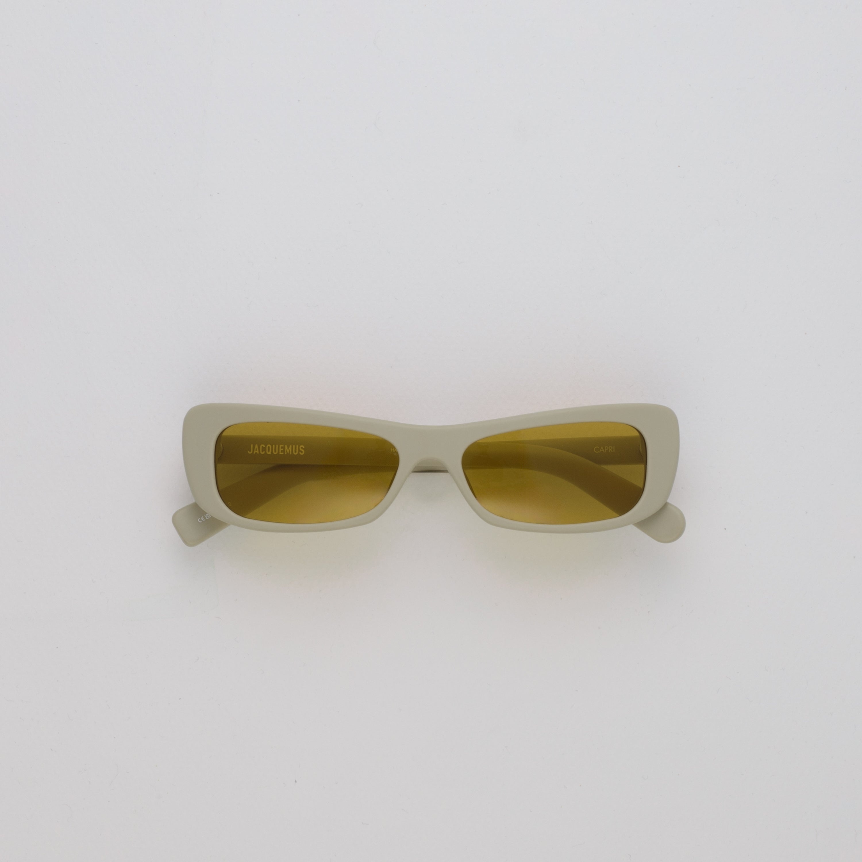 Introducing the Capri sunglasses from the SS25 Jacquemus collaboration. These cat eye sunglasses in matt cream are paired with amber lenses. Details -Country of origin: Japan -100% UV protected solid lenses -Acetate frame with acetate temples -Acetate Made in Italy -sku:JAC55C7SUN Size & Fit 55mm lens width 16mm bridge width 145mm temple length "