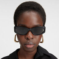 Introducing the Ovalo sunglasses from the Jacquemus collaboration. These oval sunglasses in black are paired with grey solid lenses and gold temple detailing. Details -100% UV protected solid lenses -Acetate frame with acetate temples -Acetate Made in Italy -sku:JAC4C1SUN Size & Fit 57mm lens width -15mm bridge width -140mm temple length