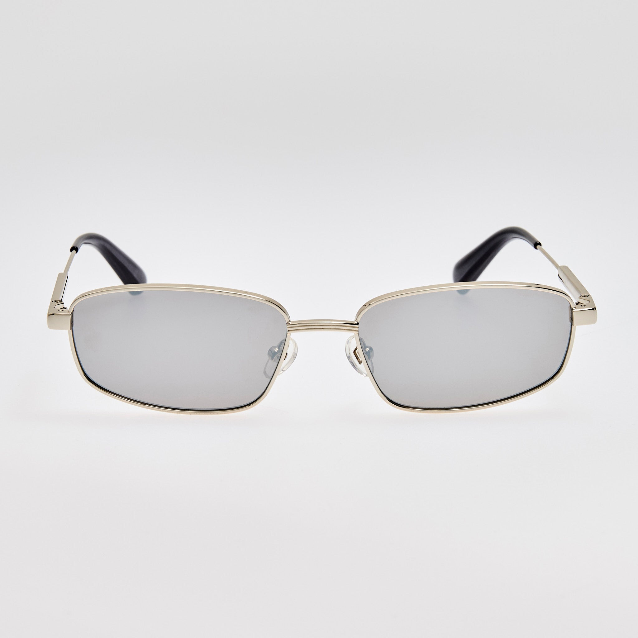The SERA is presented in sleek silver stainless steel with metallic gunmetal temple tips and silver lenses. The rectangular shape is enhanced with adjustable nose pads for a luxurious yet comfortable wear. Details -Country of origin: Japan -100% UV protected lenses -Stainless Steel Frame -sku:JAC121C4SUN Size & Fit 63mm lens width 12mm bridge width 135mm temple length