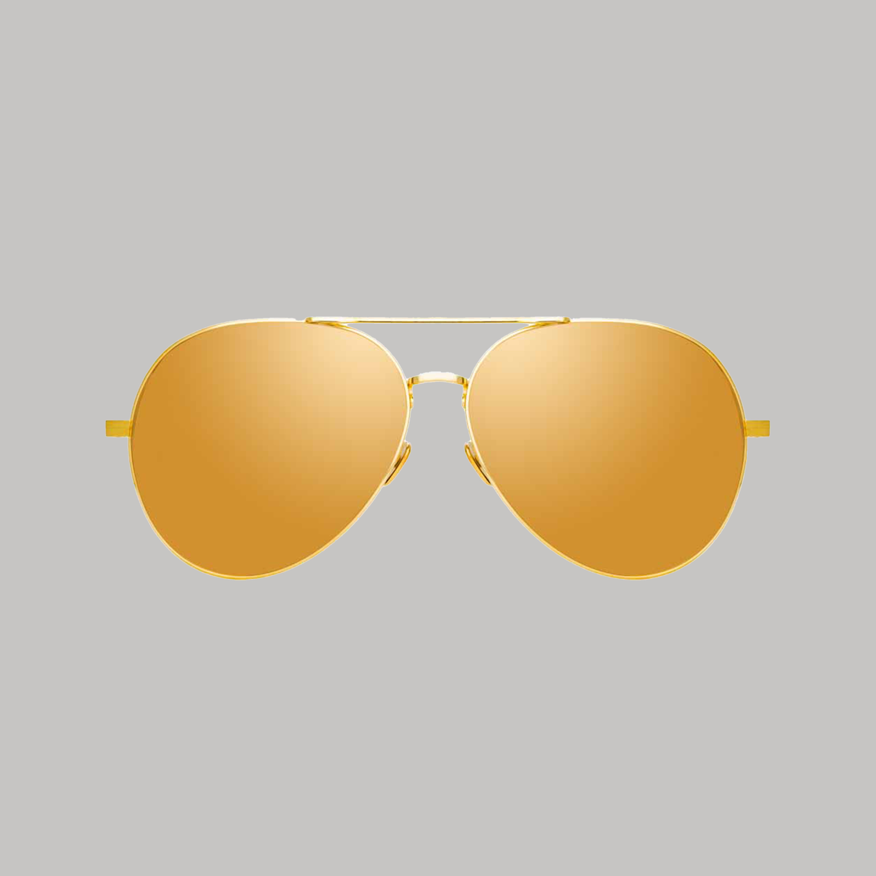 Encapsulating pioneering design and the extraordinary craftsmanship, these ultra glamorous Linda Farrow aviator sunglasses are crafted from18-22 carat yellow gold-plated titanium with coordinating precious gold lenses. Details -100% UV protected nylon lenses -Titanium frame with titanium temples -Made in Japan -sku: LFL992C2SUN Size & Fit 65mm lens width 15mm bridge width 140mm temple length