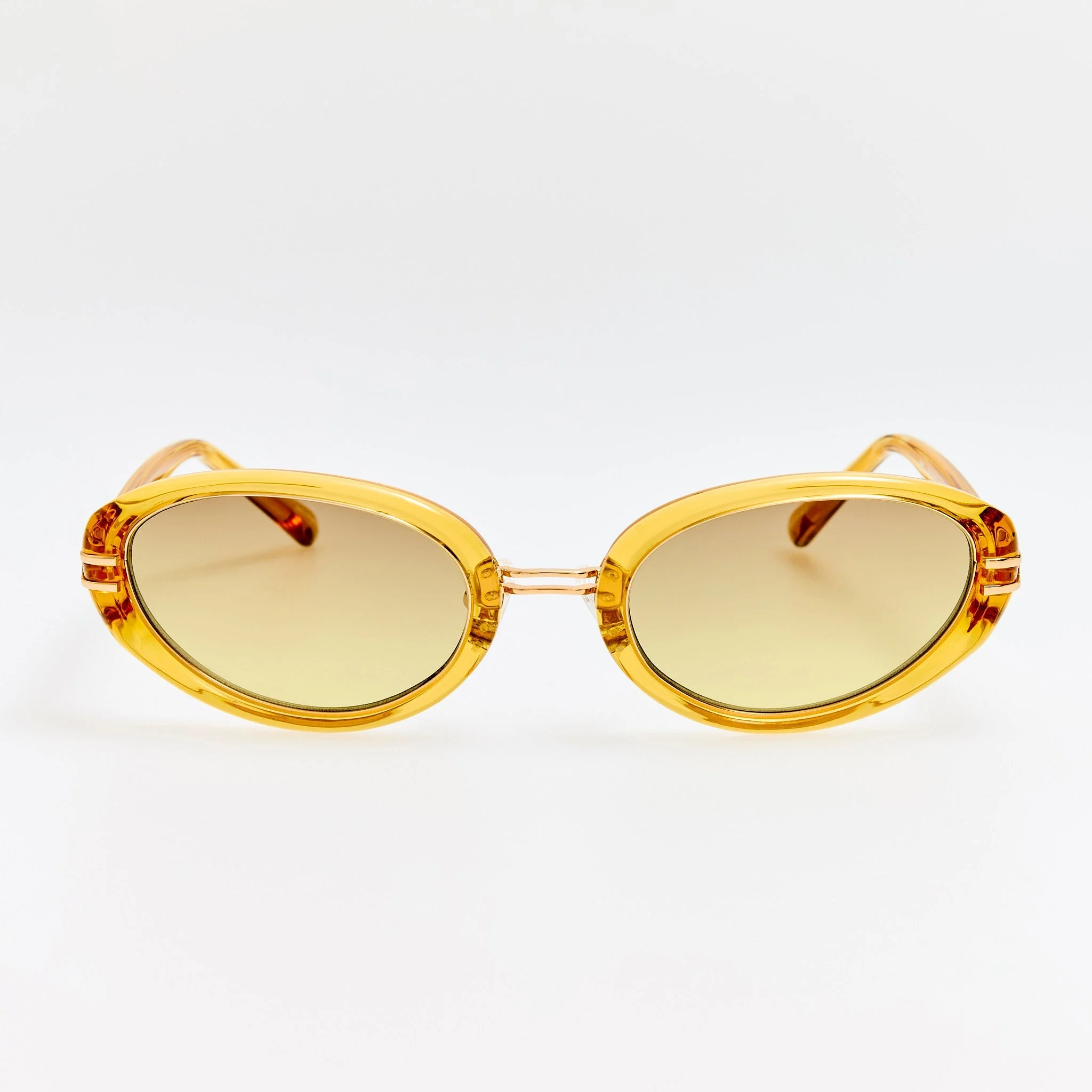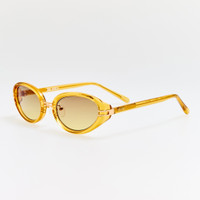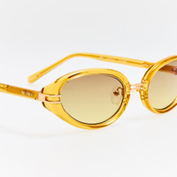 Introducing the Ambra Oval Frame. Crafted from mustard Italian acetate this frame is fitted with mustard lenses offering full UV protection and adjustable silicone nose pads that offer a tailored fit by allowing bespoke positioning for enhanced comfort. Slim temples are accented with gold branding. This is a collaboration with Milan - based fashion brand The Attico. The collection translates The Attico’s confident, feminine aesthetic into a range of refined sunglasses featuring vibrant hues, sculptural silhouettes, and modern attitude. Details -Country of origin: Japan -100% UV protected gradient lenses -Acetate frame with acetate temples -Acetate Made in Italy -sku: ATTICO83C4SUN Size & Fit 55mm lens width 22mm bridge width 145mm temple length
