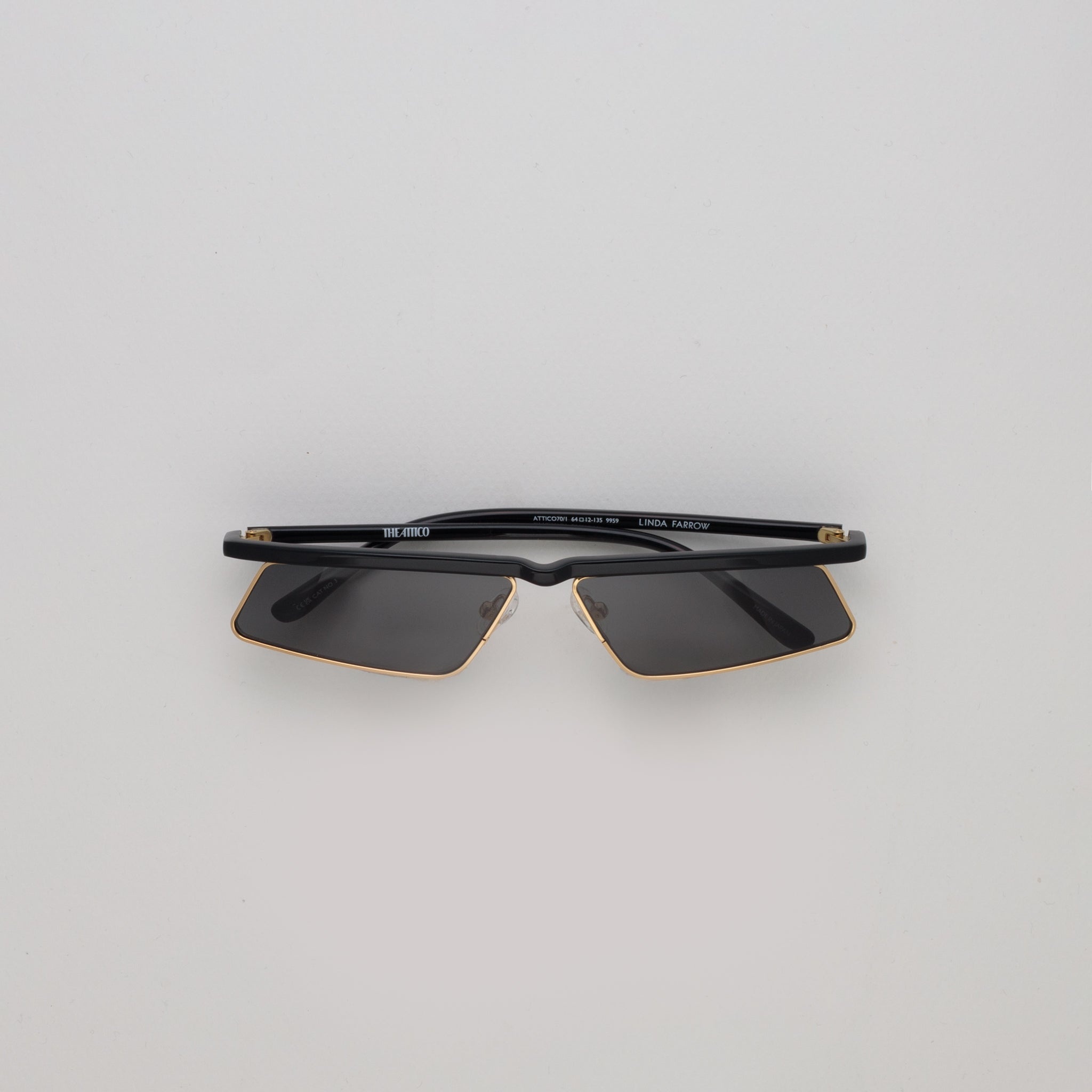 Introducing the Aria from our collaboration with Milan fashion house The Attico. These cat eye sunglasses are realised in a yellow gold stainless steel and fitted with grey lenses. Details " -Country of origin : Japan -Stainless Steel Frame -sku:ATTICO70C1SUN " Size & Fit 64mm lens width 12mm bridge width 135mm temple length "