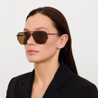 This Aviador silhouette reinterprets the classic aviator with a bordeaux stainless steel front and contrasting black temple tips. Brown lenses this frame is fitted with adjustable nose pads for a tailored, comfortable fit. Details -Country of origin: Japan -100% UV protected lenses -Stainless Steel Frame -sku:JAC67C6SUN Size & Fit 63mm lens width 12mm bridge width 135mm temple length