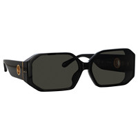 Introducing Bailey. These angular sunglasses are sculpted from recycled black acetate and fitted with grey solid lenses. Set into the temple our signature 22 carat gold plated logo eyelets. Keep your frames protected in the LINDA FARROW travel case. Details -100% UV protected solid lenses -Acetate frame with acetate temples -Made in Japan -sku:LFL1427C1SUN Size & Fit 62mm lens width 15mm bridge width 140mm temple length