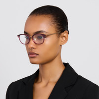 Finely sculpted wine acetate rims are paired with a delicate matt champagne plated titanium frame work which runs along the inner brown and into sleek tapered temples. This optical d-frame is fitted with adjustable titanium nose pads that offer a tailored fit by allowing bespoke positioning for enhanced comfort. Details -Optical lens free from prescription -Acetate frame with titanium temples -Titanium Made in Japan -sku:LFL1611C3OPT Size & Fit 50mm lens width 18mm bridge width 145mm temple length