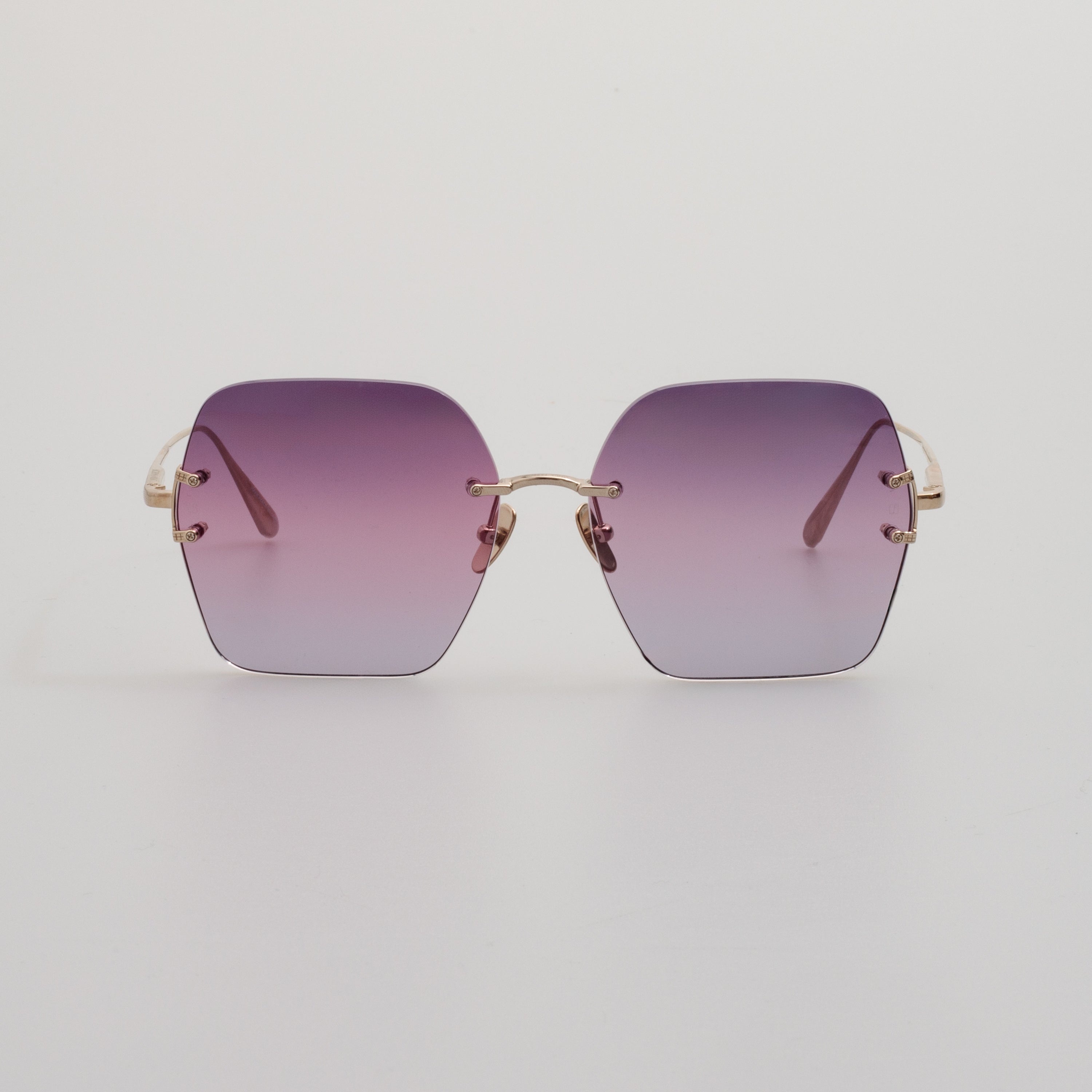 Meet the Carina, the rimless hexagonal silhouette of the S/S '25 season. Featuring purple gradient technology lenses clasped in with light gold plated titanium temples