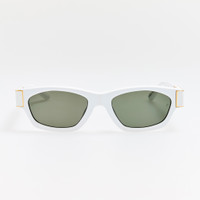 This product is a limited edition of 50. The edition number is printed on the inside of the temple #/50. This d-frame is crafted from Italian acetate in white and fitted with solid grey lenses offering full UV protection. The contour eyelet hinge is crafted as a sculptural wrap around element. This custom hardware curves from the temple and extends seamlessly onto the front of the acetate frame. Finished in hand-applied colour leaving fine raised lines of gold-plated metal, the design reveals industrial screw detailing and our iconic 22k gold plated titanium eyelet bearing the brand logo. The frame features sculpted nose pads for a tailored fit. Details -Country of origin: Japan -100% UV protected solid lenses -Acetate frame with acetate temples -Acetate Made in Italy -sku: LFL1623C3SUN Size & Fit 53mm lens width 19mm bridge width 145mm temple length