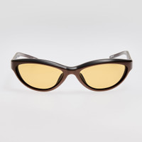 The Curvo sunglasses feature a cat-eye silhouette in metallic brown acetate. Amber lenses offer 100% UV protection and sculpted nose pads provide both style and comfort. Temples are detailed with silver branding for a refined finish. Details -Country of origin: Japan -100% UV protected lenses -Acetate frame with acetate temples -sku:JAC134C4SUN Size & Fit 63mm lens width 12mm bridge width 135mm temple length