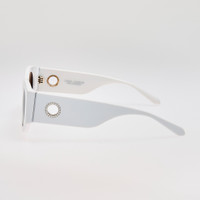 The Linda Farrow Fine Jewellery Collection is crafted using the world’s most precious materials — solid 18–22 karat gold, handset diamonds, sapphires, and other gemstones paired with our Italian acetate frame. Each style balances sculptural design with the refinement of fine jewellery, offering a level of luxury found nowhere else in eyewear. The Debbie are hand polished for a glossy finish in stunning white Italian acetate. The rounded D-frame style features a light gold-plated titanium eyelet delicately set with a diamonds for a refined touch of luxury.. The style is fitted with grey graduated ZEISS technology lenses for optimum clarity and UV protection. Laminated nose pads and temple tips ensure a comfortable fit. Details -100% UV protected soild lenses -Acetate frame with Acetate temples -Made in Japan -sku:LFL1059C3SUN Size & Fit " 54mm lens width 19.5mm bridge width 145mm temple length "