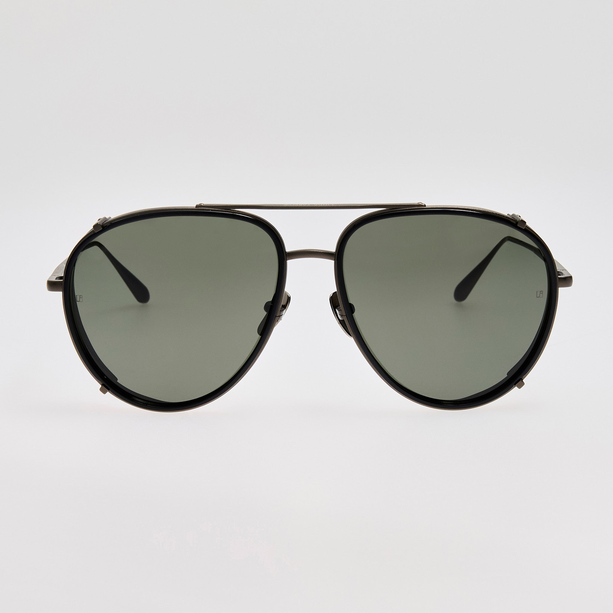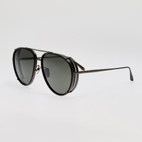 Crafted from pure Japanes titanium, the sunglasses have a black frame with an engineered side shield in matt nickel The style is finished wirth the signature LINDA FARROW temple.Fitted with solid grey lenses, offering anti-glare and UV protection the frame is fitted with adjustable nose pads offer a tailored fit by allowing bespoke positioning for enhanced comfort. Details -Country of origin: Japan -100% UV protected lenses -Titanium frame with titanium temples -LFL1362C4SUN Size & Fit 62mm lens width 17mm bridge width 145mm temple length