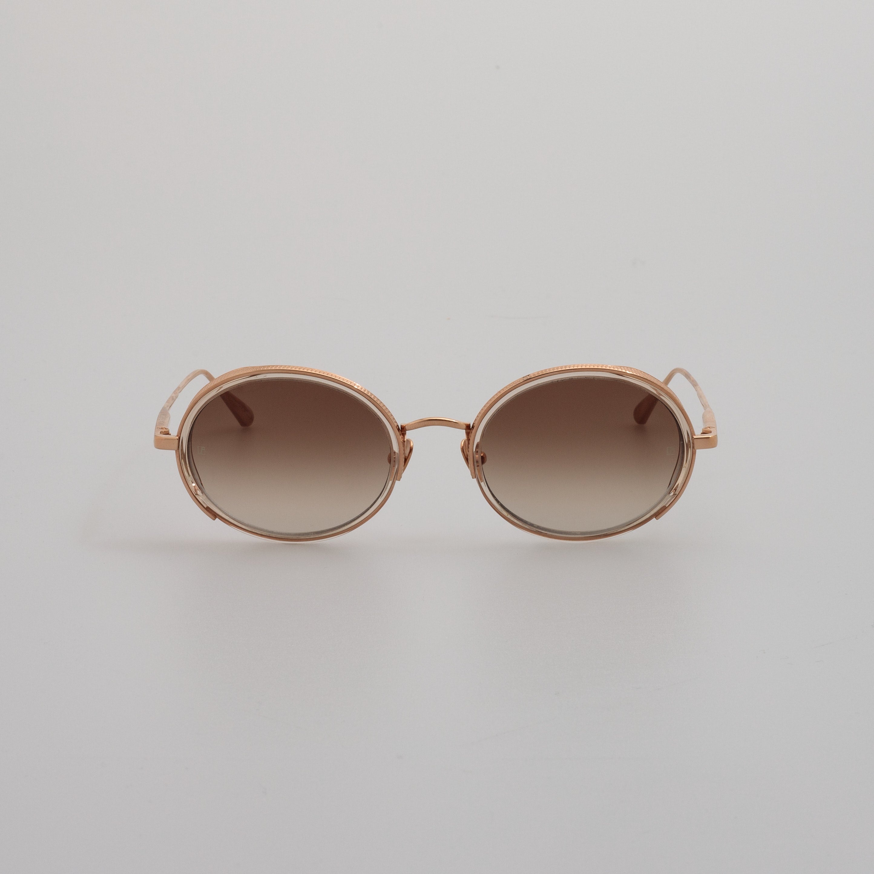 These oval sunglasses from the LINDA FARROW collection combine a rose gold plated rim with meticulously etched brows for an eye catching finish. Balanced with a sleek tapered temples and fitted with brown ZEISS technology sunglass lenses for optimum clarity and UV protection. Details -100% UV protected gradient lenses -Titanium frame with tianium temples -Country of origin : Japan -sku:LFL1413C3SUN Size & Fit " 52mm lens width 21mm bridge width 146mm temple length "