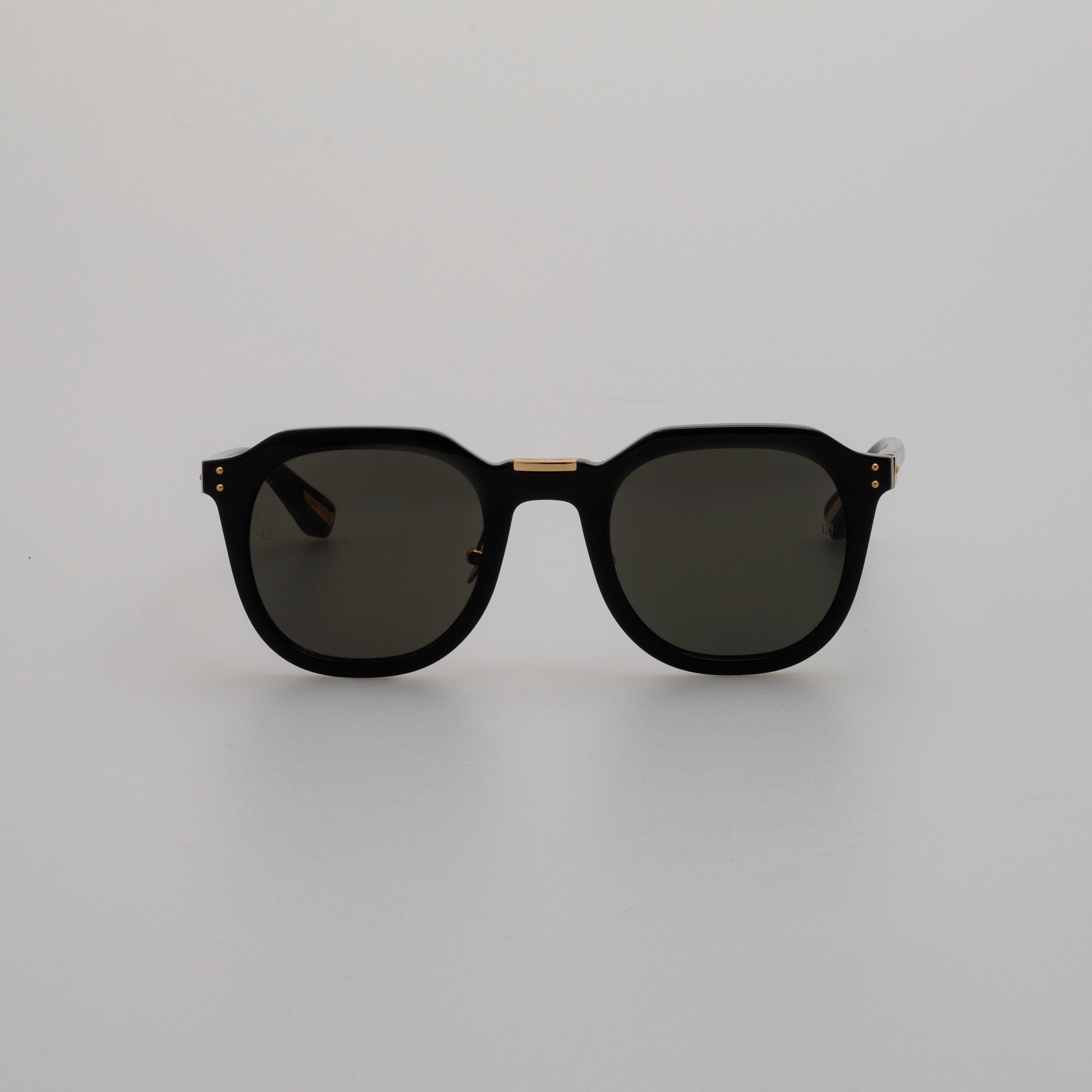 The Fletcher employs subtle detailing to elevate and add intrigue. The angular sunglasses are sculpted from recycled black acetate, facets leading to a squared titanium bridge detail. The 22 carat yellow gold plated accent carries subtle logos and flows into adjustable nose pads for a comfortable fit. Details -100% UV protected soild lenses -Acetate frame with acetate temples -Acetate Made in Italy -sku:LFL1103C1SUN Size & Fit " 49mm lens width 24mm bridge width 145mm temple length "