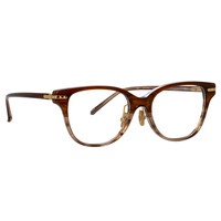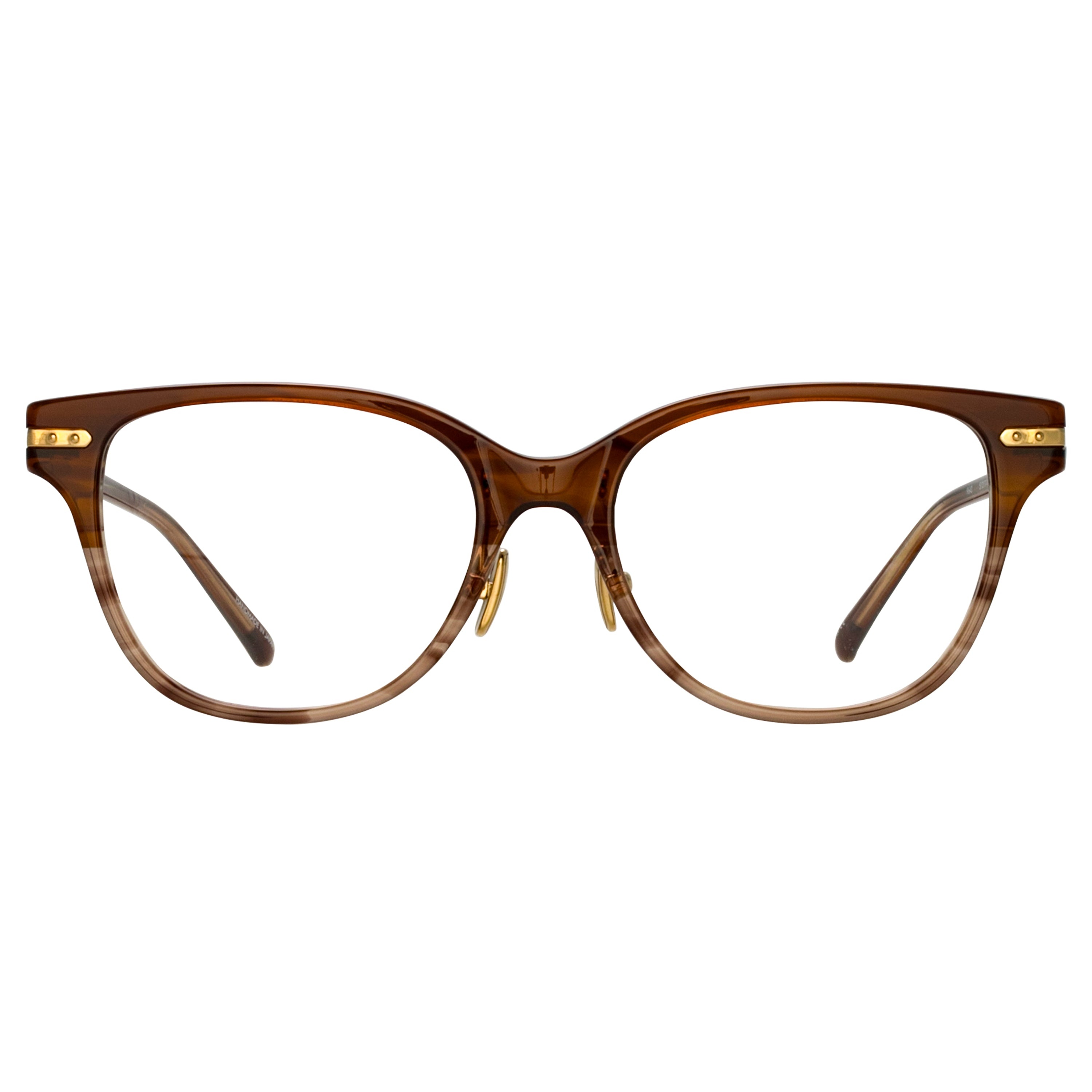 Inspired by strong architectural lines, these D-Frame optical glasses are crafted from caramel horn hand polished acetate and ultra lightweight light gold titanium. Details " -Country of origin : Japan -Optical lens free from prescription -Acetate frame with acetate temples -Acetate Made in Italy -sku: "LF86AC3OPT Size & Fit 51mm lens width 17mm bridge width 145mm temple length