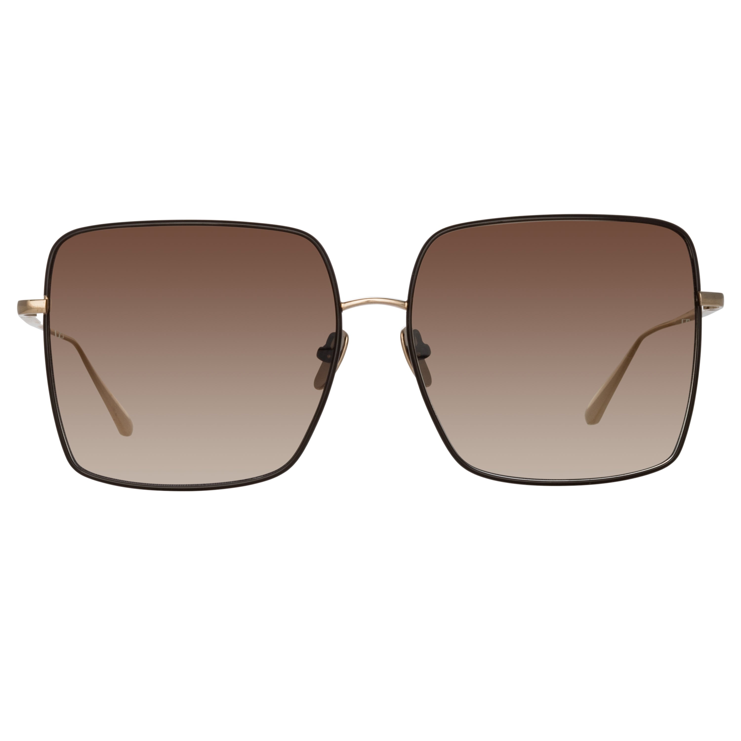 Introducing the Hina sunglasses. Spun from pure Japanese titanium the 22 carat light gold plated sunglasses are partially encircled by a contrasting brown rim which forms its silhouette. Keep your frames protected in the LINDA FARROW travel case. Details -100% UV protected solid lenses -Titanium frame with titanium temples -Titanium Made in Japan -sku:LFL1458C3SUN Size & Fit 66mm lens width 16mm bridge width 145mm temple length