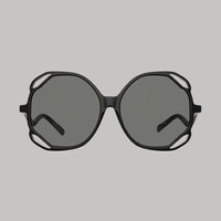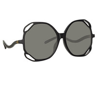 A key piece for the season the Jerry sunglasses are the epitome of LINDA FARROW statement style. The oversized angular cutwork frame has been skillfully carved using special technology high density black acetate for a delicate outline. Details -100% UV protected soild lenses -Acetate frame with acetate temples -Made in Japan -sku:LFL1067C6OPT Size & Fit 63mm lens width 16mm bridge width 145mm temple length