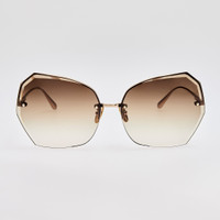 The LILA is an oversized rimless frame crafted from 22 carat light gold-plated pure Japanese titanium, offering a bold and elegant silhouette. This frame features gradient lenses with 100% UV protection, delivering style and sun safety in one. Designed for comfort, it includes adjustable titanium nose pads for a tailored fit. Details -Country of origin: Japan -100% UV protected lenses -Titanium frame with titanium temples -sku:LFL1546C1SUN Size & Fit 69mm lens width 15mm bridge width 140mm temple length
