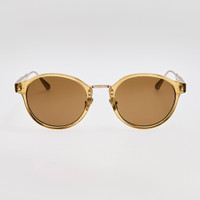 Discover refined elegance with the Marco sun model, featuring a combination frame of 22 carat yellow gold temples paired with khaki Italian acetate. The oval frame shape houses green lenses that provide superior UV protection. Made with high-quality materials, this frame combines durability with a lightweight feel and includes laminated nose pads for optimal comfort. Details -Country of origin: Japan -100% UV protected lenses -Acetate frame with titanium temples -sku:LFL1535C8SUN Size & Fit 49mm lens width 21mm bridge width 145mm temple length