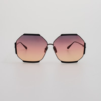 Margot Hexagon Sunglasses in Black and Sunset Lenses