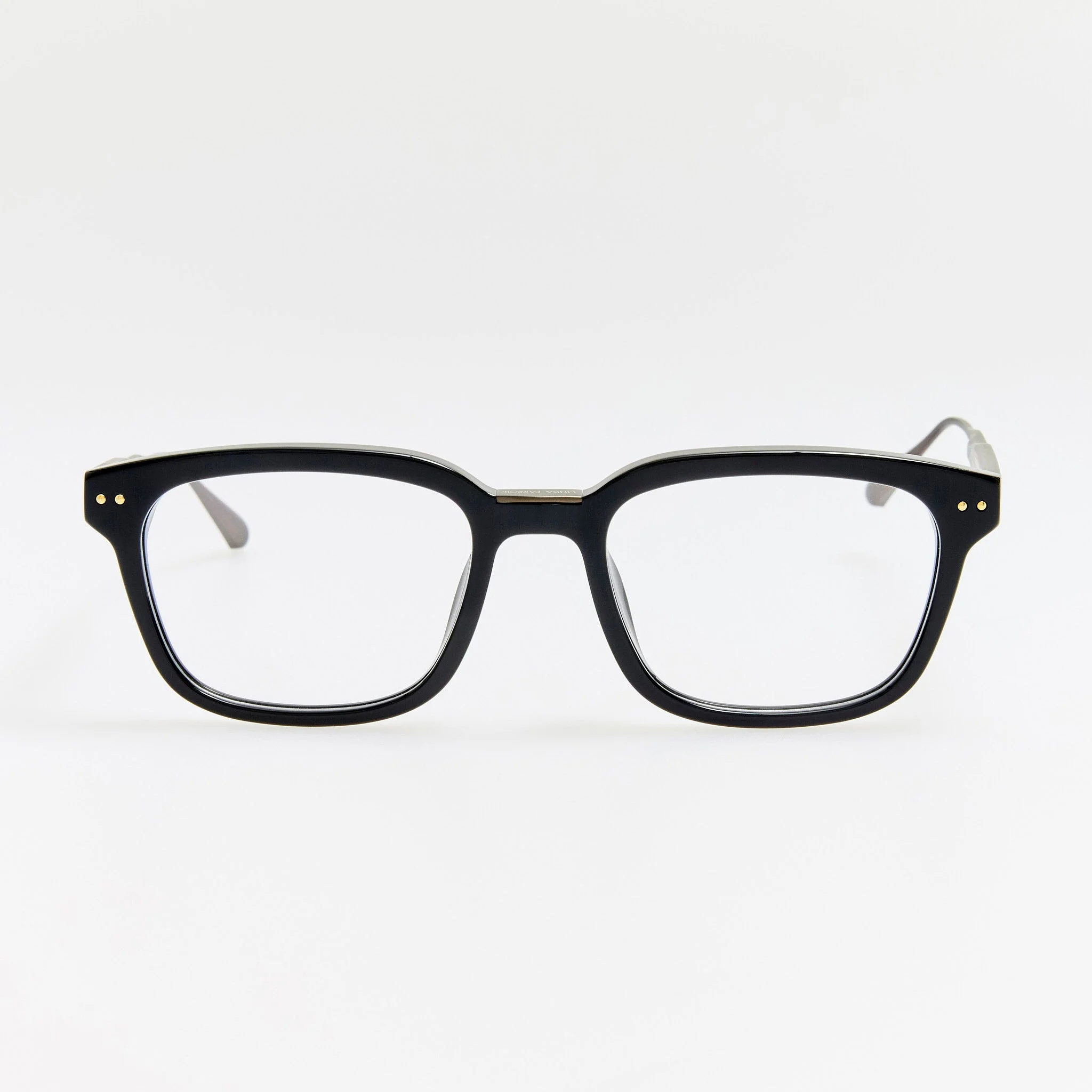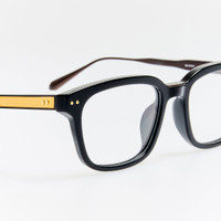 Finely sculpted black acetate rims are paired with nickel titanium frame work which runs along the inner brown and into sleek tapered temples. This optical d-frame is fitted with adjustable titanium nose pads that offer a tailored fit by allowing bespoke positioning for enhanced comfort. Details -Optical lens free from prescription -Acetate frame with titanium temples -Titanium Made in Japan -sku:LFL1613C1OPT Size & Fit 52mm lens width 19mm bridge width 145mm temple length