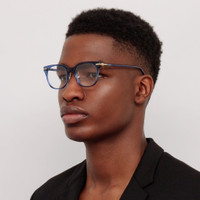 Inspired by strong architectural lines, these D-Frame optical glasses are crafted from navy hand polished acetate and ultra lightweight light gold titanium. The frame is elevated with discreet detailing, a gold plated linear line detail inset to the rim. Details " -Country of origin : Japan -Optical lens free from prescription -Acetate frame with acetate temples -Acetate Made in Italy -sku: "LF83AC6OPT Size & Fit 49mm lens width 20mm bridge width 145mm temple length