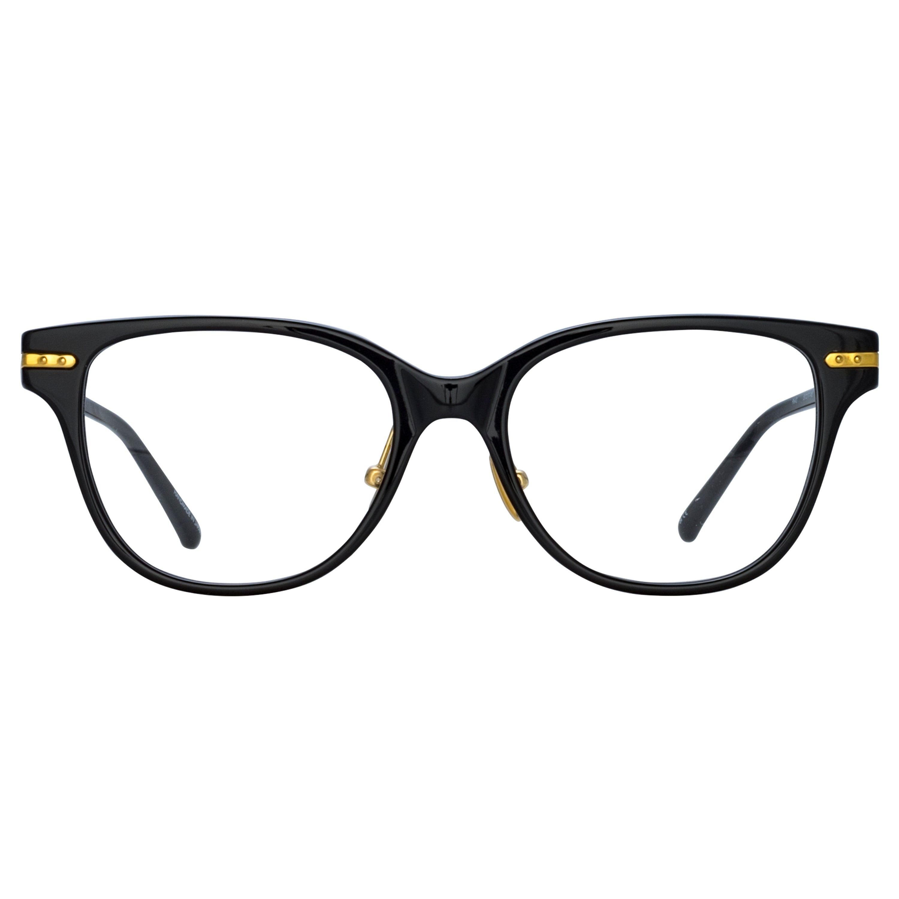Inspired by strong architectural lines, these D-Frame optical glasses are crafted from black hand polished acetate and ultra lightweight yellow gold titanium. Details " -Country of origin : Japan -Optical lens free from prescription -Acetate frame with acetate temples -Acetate Made in Italy -sku: "LF86AC1OPT Size & Fit 51mm lens width 17mm bridge width 145mm temple length "