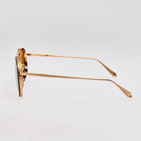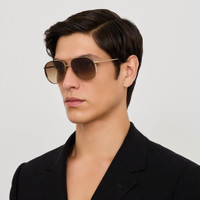 The Meret sunglasses feature a classic aviator shape crafted from matt champagne plated pure Japanese titanium The lightweight and durable titanium frame provides superior comfort and style. Brown gradient lenses offer excellent UV protection, perfect for any sunny day. Adjustable nose pads ensure a secure and comfortable fit. Details -Country of origin: Japan -100% UV protected lenses -Titanium frame with titanium temples -sku:LFL1547C2SUN Size & Fit 57mm lens width 16mm bridge width 145mm temple length