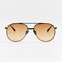 The Meret aviator frame is crafted nickel plated pure Japanese titanium. Fitted with mocha gradient lenses offering full UV protection. The frame is fitted with adjustable titanium nose pads that offer a tailored fit by allowing bespoke positioning for enhanced comfort. Details -Country of origin: Japan -100% UV protected gradient lenses Titanium frame with titanium temples -Titanium Made in Japan -sku: LFL1547C4SUN Size & Fit 57mm lens width 16mm bridge width 145mm temple length