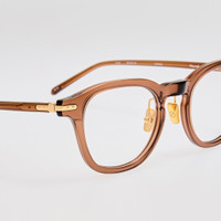 The Nouvel optical frame is crafted from brown Italian acetate. Featuring a classic D-frame silhouette, this design is elevated by 22 carat yellow gold-plated hardware for a subtle touch of luxury. Laminated sculpted nose pads ensure comfort and stability, making it an ideal companion for all-day wear. Details -Country of origin: Japan -Optical lens free from prescription -Acetate frame with acetate temples -sku:LF95AC2OPT Size & Fit 50mm lens width 23mm bridge width 145mm temple length