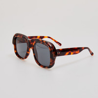 This oversized sunglasses are creafted from chuncky tortoiseshell acetate. The grey solid lenses offer 100% UV protection. The frame is sculpted for comfort with laminated, sculpted nose pads for a tailored fit. Details -Country of origin: Japan -100% UV protected lenses -Acetate frame with acetate temples -sku:DVN217C3SUN Size & Fit 63mm lens width 12mm bridge width 135mm temple length