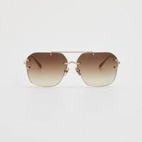 Introducing Reyner. Inspired by strong architectural lines, these Square rimless sunglasses ultra lightweight light gold plated pure titanium. Fitted with brown lenses Details -Country of origin : Japan -100% UV protected solid lenses -Titanium frame with titanium temples -sku:LFL1312C2SUN Size & Fit 53mm lens width 13mm bridge width 145mm temple length