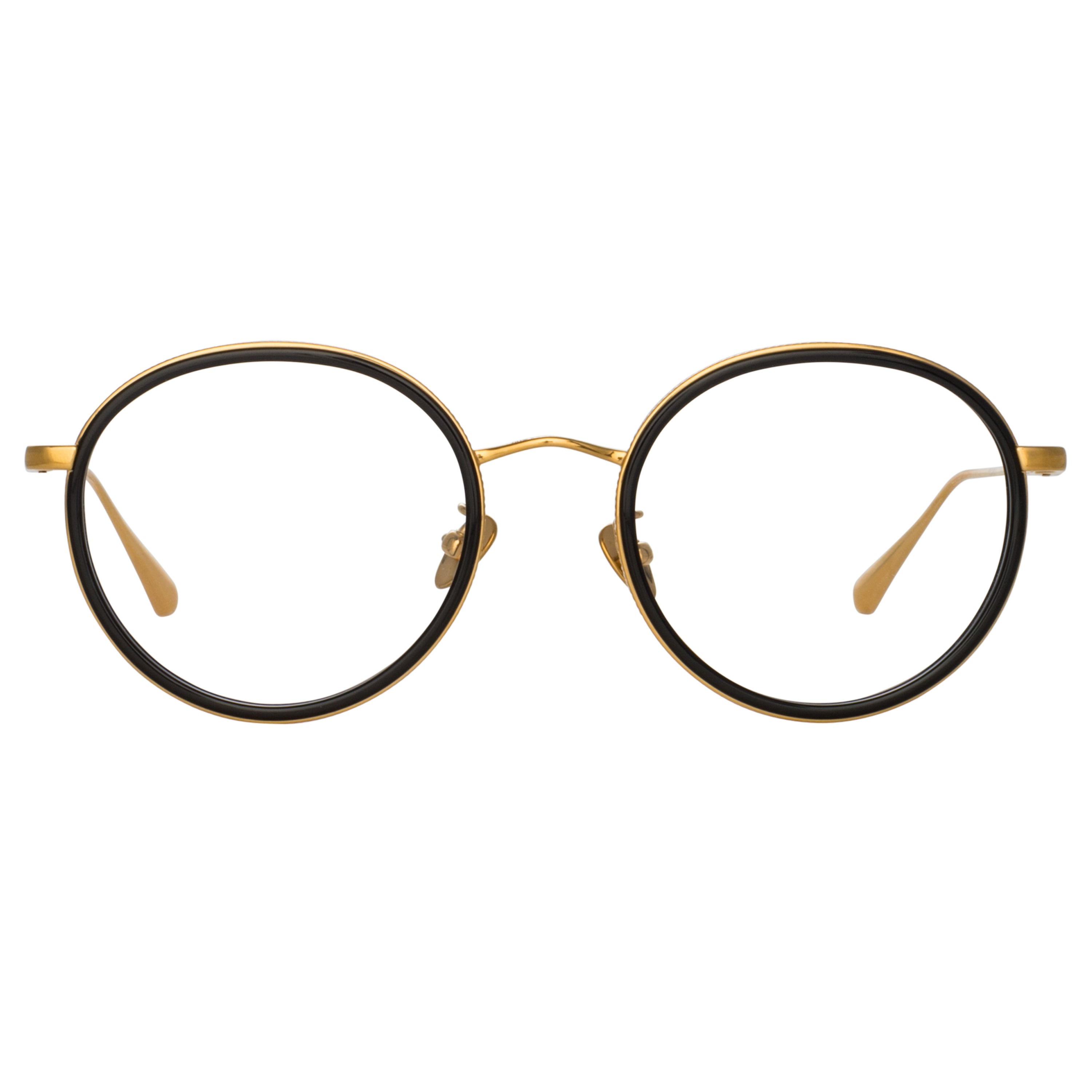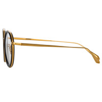 A striking balance of finely sculpted acetate and smooth shiny titanium lends these round optical frames their allure. The Sato optical frame from the LINDA FARROW collection is formed from a finely stepped recycled black acetate rim encircled with a highly polished 22 carat yellow gold plated titanium brow which is held in place with a fine gold wire running beneath the eye. Keep your frames protected in the LINDA FARROW travel case. Details -Optical lens free from prescription -Titanium frame with titanium temples -Titanium Made in Japan sku:LFL1452C1OPT Size & Fit 50mm lens width 19mm bridge width 146mm temple length