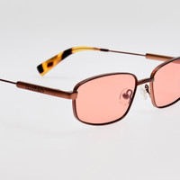 Rendered in matte metallic brown stainless steel, the SERA offers a sleek rectangular shape with tortoiseshell-inspired temple tips and rose-tinted lenses. Adjustable nose pads for a luxurious yet comfortable wear. Details -Country of origin: Japan -100% UV protected lenses -Stainless Steel Frame -sku:JAC121C2SUN Size & Fit 63mm lens width 12mm bridge width 135mm temple length