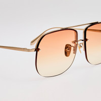 The classic aviator silhouette receives a contemporary update with the Seren Aviator Sunglasses. Expertly crafted from luxurious 18 carat rose-gold Japanese titanium and featuring gradient camel lens. Adjustable nose pads offer a tailored fit by allowing bespoke positioning for enhanced comfort. They are universal and particularly suited for those with a lower nose bridge, as they provide custom support. Details -Country of origin: Japan -100% UV protected lenses -Titanium frame with titanium temples -sku:LFL1539C7SUN Size & Fit 62mm lens width 14mm bridge width 140mm temple length